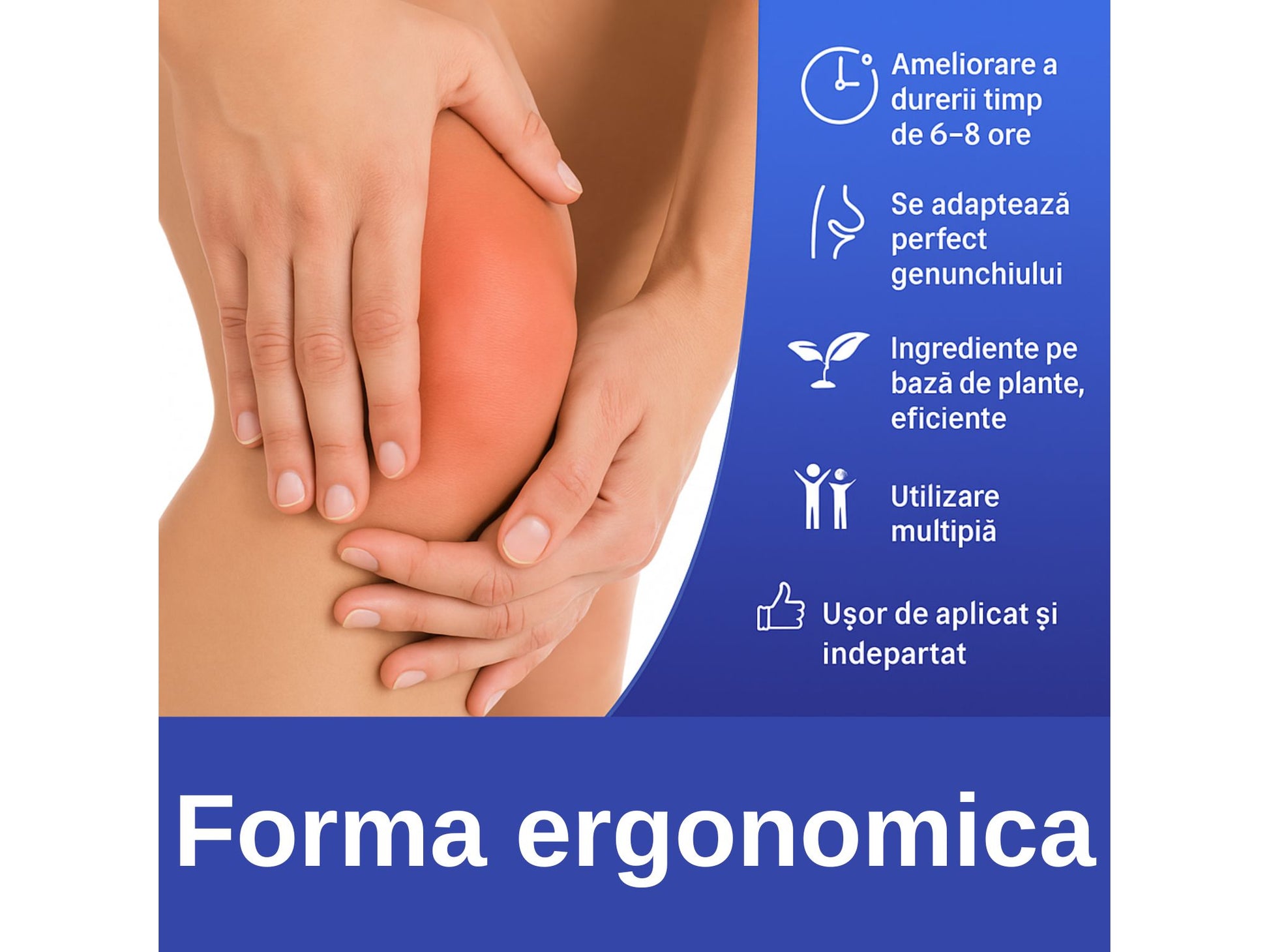 ✔ Plasture flexibil și respirabil – se mulează perfect pe genunchi